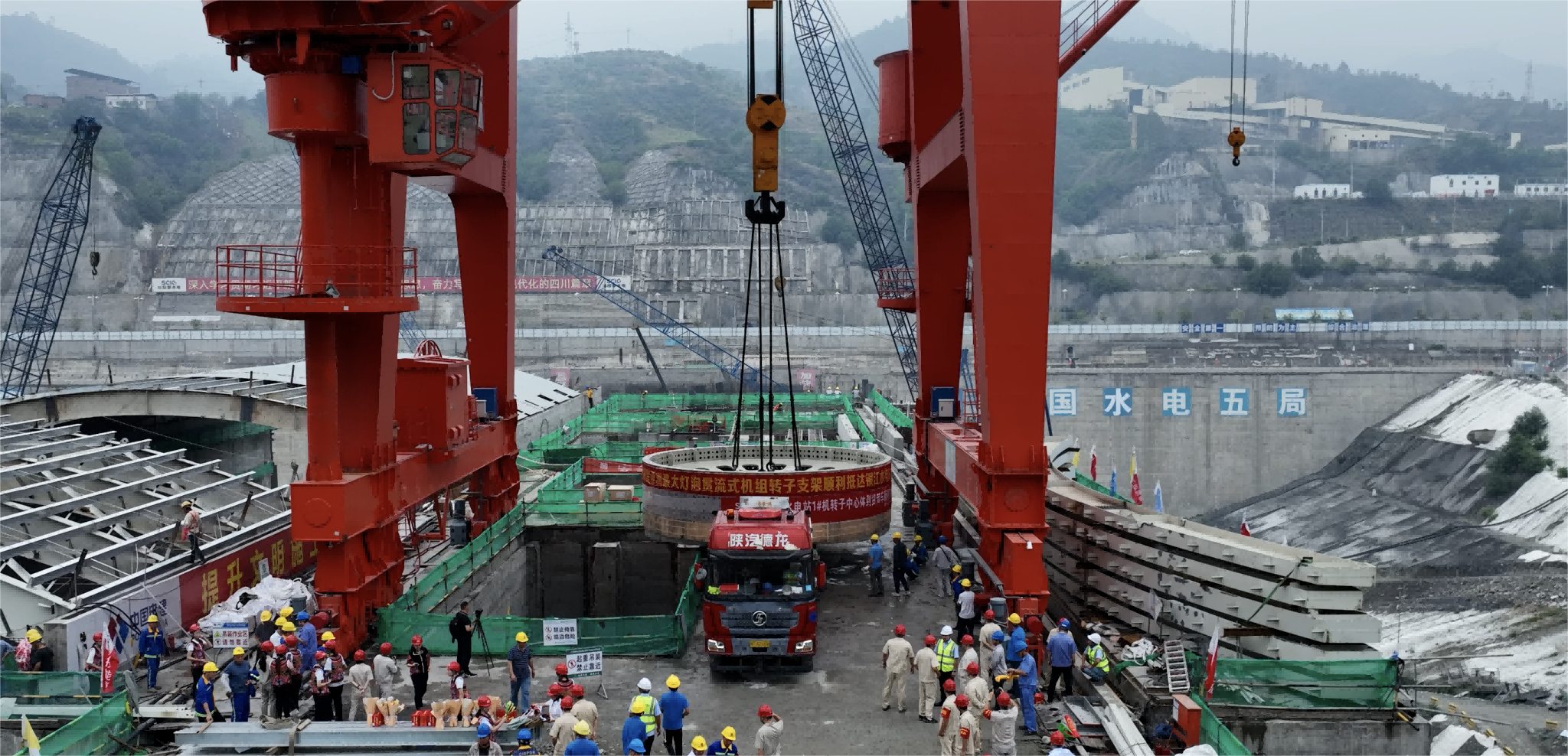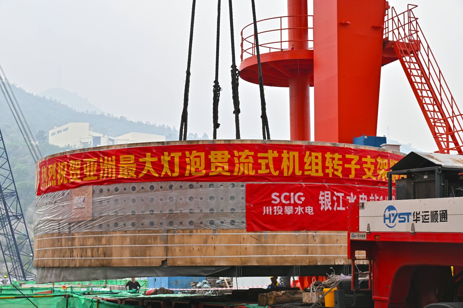 亚洲最大灯胆贯流式机组转子支架清静抵达 银江水电站并顺遂吊卸