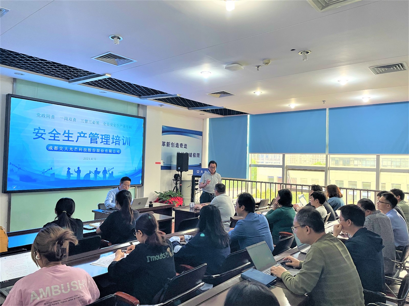 4月13日,交大光线在软件园培训室开展清静生产管理培训。公司党总支委员、安环职委会成员及各部分主管级以上职员加入培训。