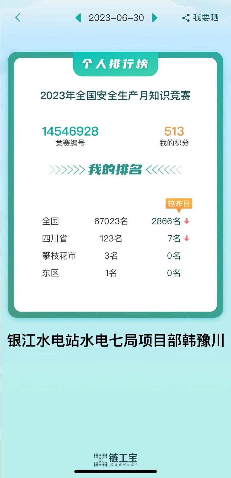 ÔÚ¡°Á´¹¤±¦¡±2023ÄêÌìÏÂÇå¾²Éú²úÔÂ֪ʶ¾ºÈü»î¶¯ÖУ¬ÅÊÖ¦»¨ÊÐǰ10ÃûÖУ¬Òø½Ë®µçÕ¾Õ¼3ÈË£¬¶«ÇøÇ°10ÃûÖУ¬Òø½Ë®µçÕ¾Õ¼6ÈË£¬ÓÐÓÃÄ¥Á·ÁËÇå¾²Éú²úÔ»Ч¹û£¬³ä·ÖÌåÏÖÁËÒø½Ë®µçվѧÇå¾²¡¢½²Çå¾²µÄō֨Çå¾²Éú²úÆø·Õ£¬½øÒ»²½Ç¿»¯ÁË¿í´ó¹¤³Ì²Î½¨Ö°Ô±µÄÇå¾²Éú²úÒâʶ¡£