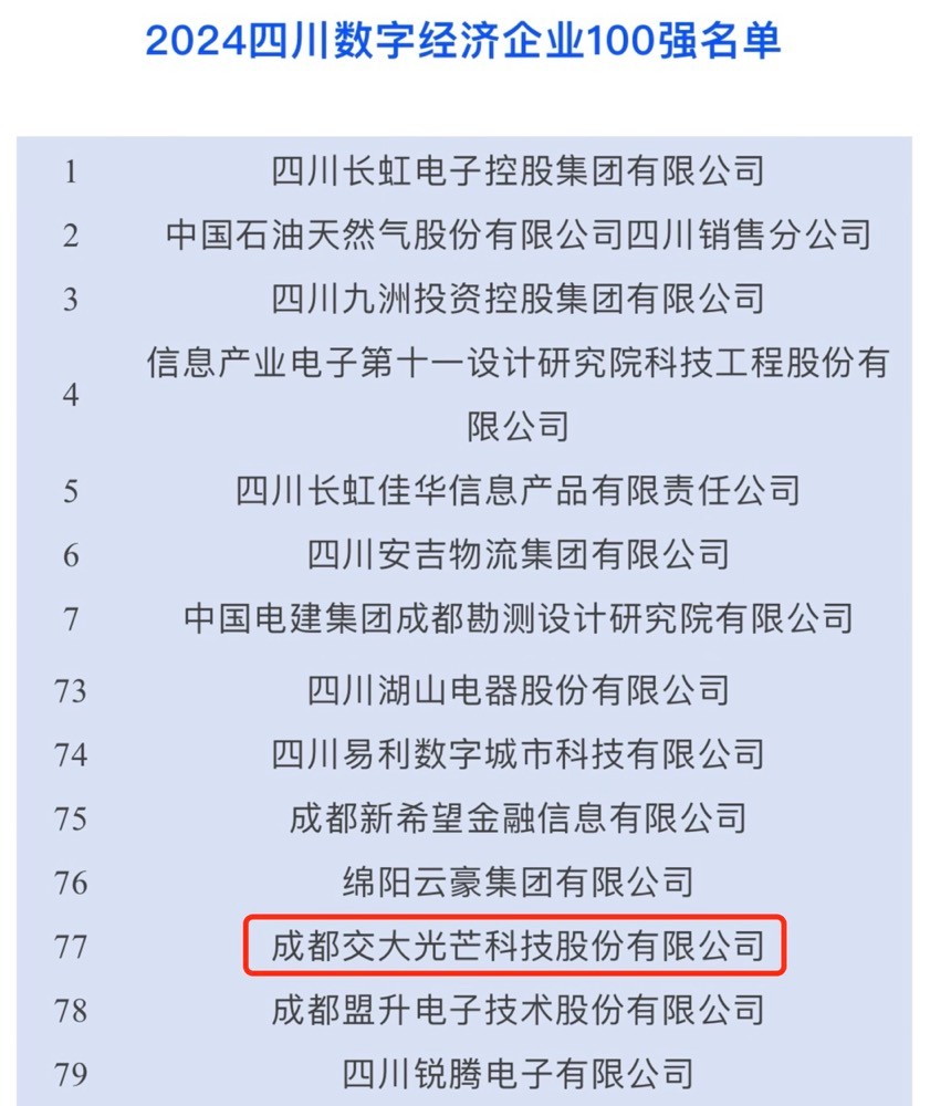 ¡¾½»´ó¹âÏß¡¿½»´ó¹âÏßÈÙµÇ2024ÄêËÄ´¨Êý×Ö¾­¼ÃÆóÒµ100Ç¿°ñµ¥