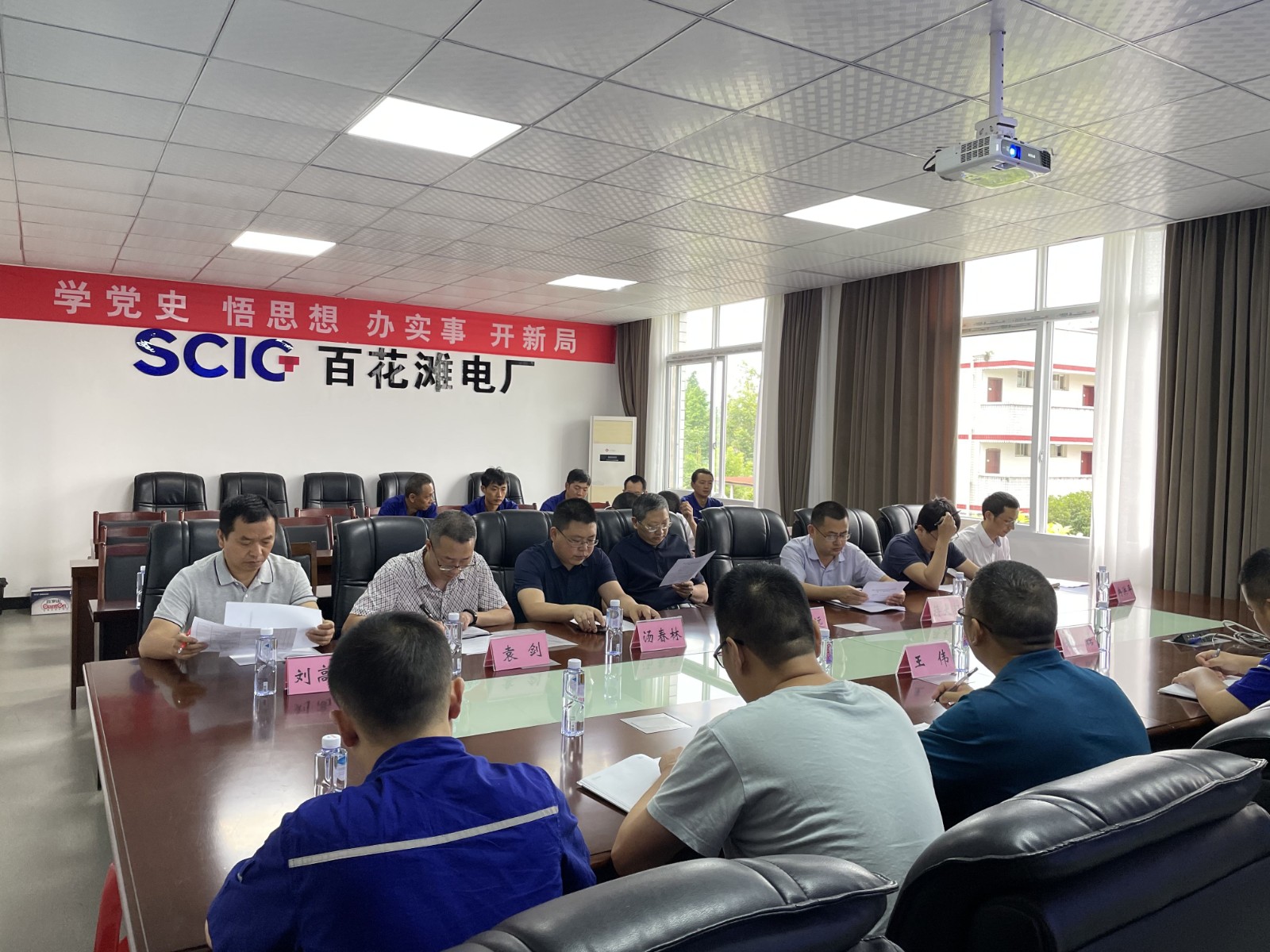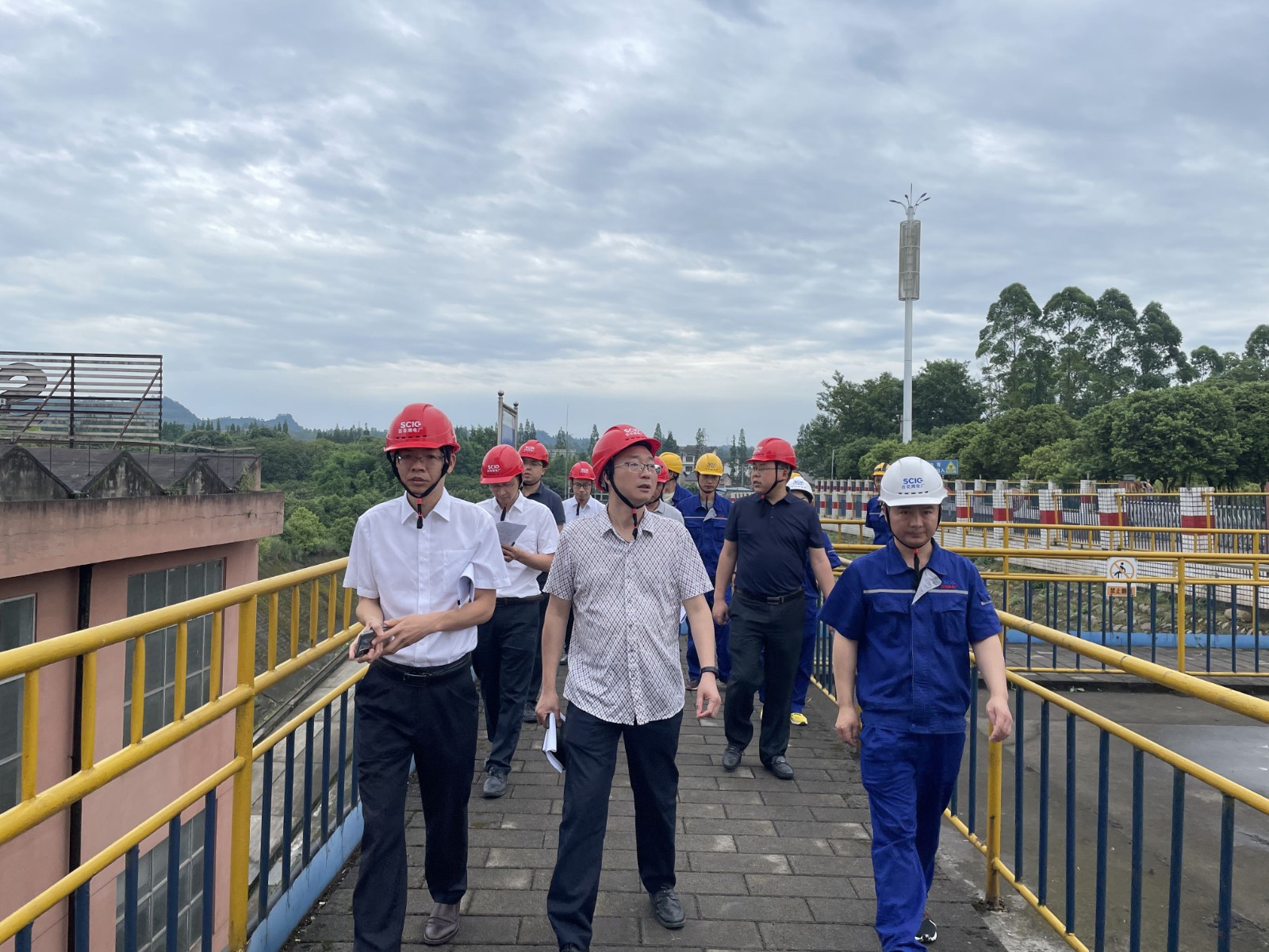 6月8日上午, 四川省港航投资集团有限责任公司党委委员、职工董事、工会主席谢敬远一行9人组成专家组到人生就是博能源所属百花滩电站举行电力企业年中清静生产交织检查。